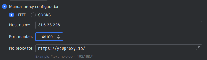 The IDE supports SOCKS5 IPs for its own network operations, including plugin downloads, the built-in HTTP client, and Marketplace access. However, tools such as Git, Maven, Gradle, and package managers use separate networking stacks. They usually require manual configuration or HTTP/HTTPS ones that align better with corporate infrastructure.