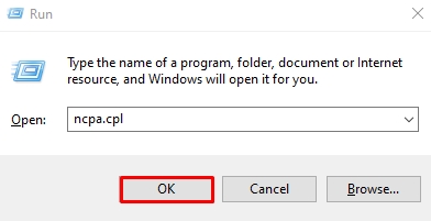 Press Win+R, enter ncpa.cpl in the window that appears, and confirm by clicking OK.